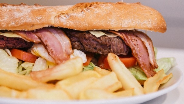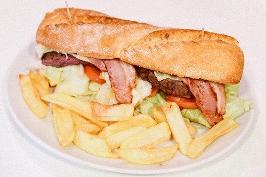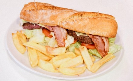 Pechuga, lechuga, tomate, bacon, york, queso y alioli